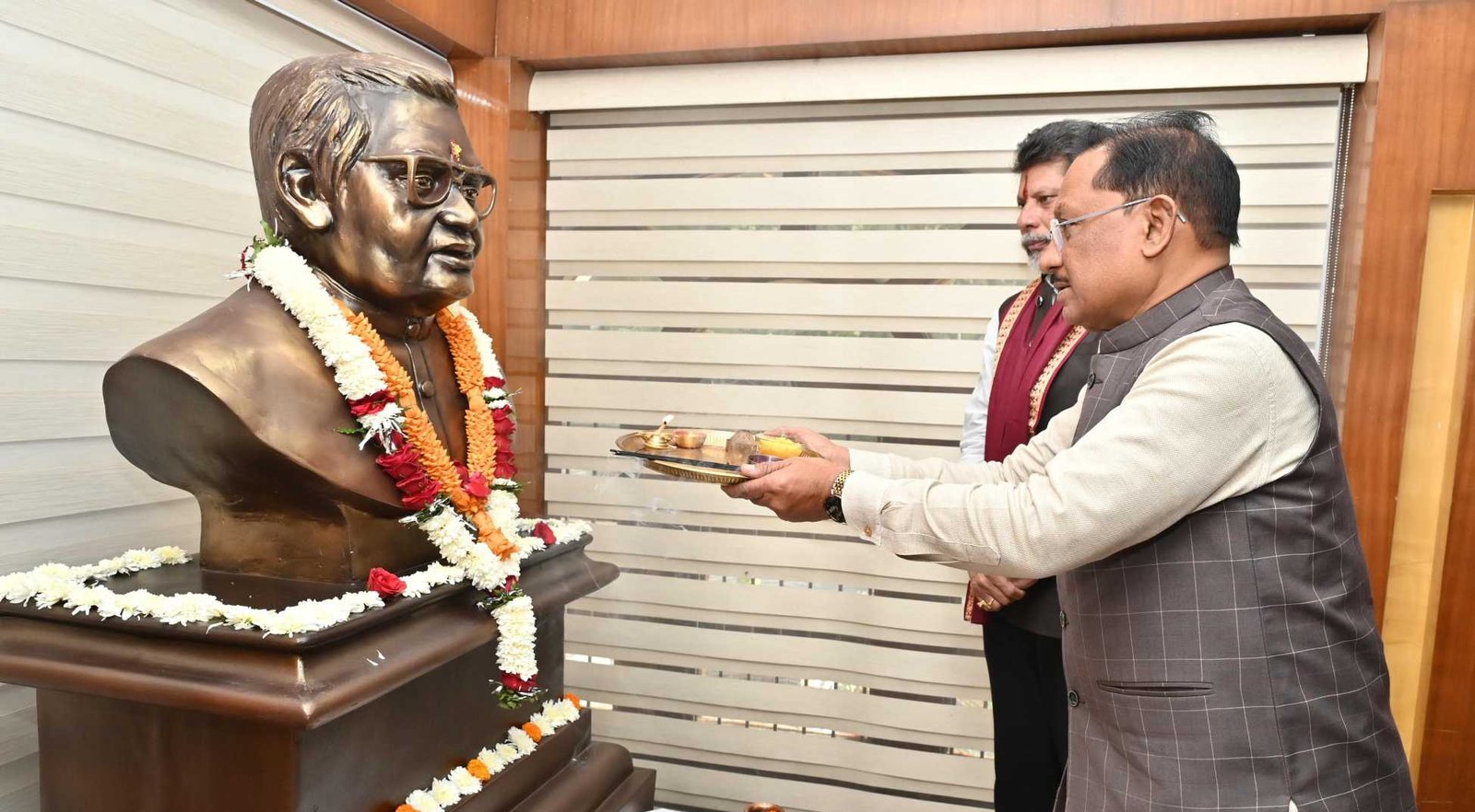 मुख्यमंत्री विष्णु देव साय ने भारत रत्न अटल बिहारी वाजपेयी की प्रतिमा पर माल्यार्पण कर दी श्रद्धांजलि