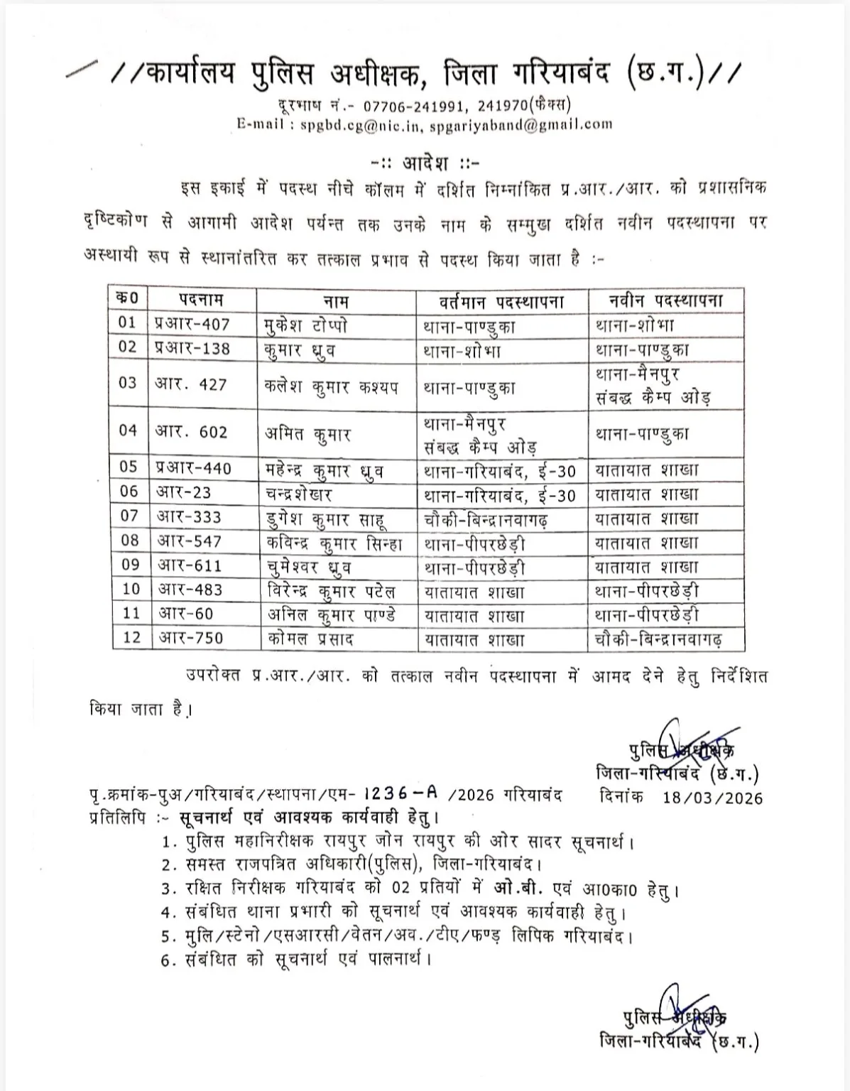 पुलिस विभाग में बड़ा फेरबदल..