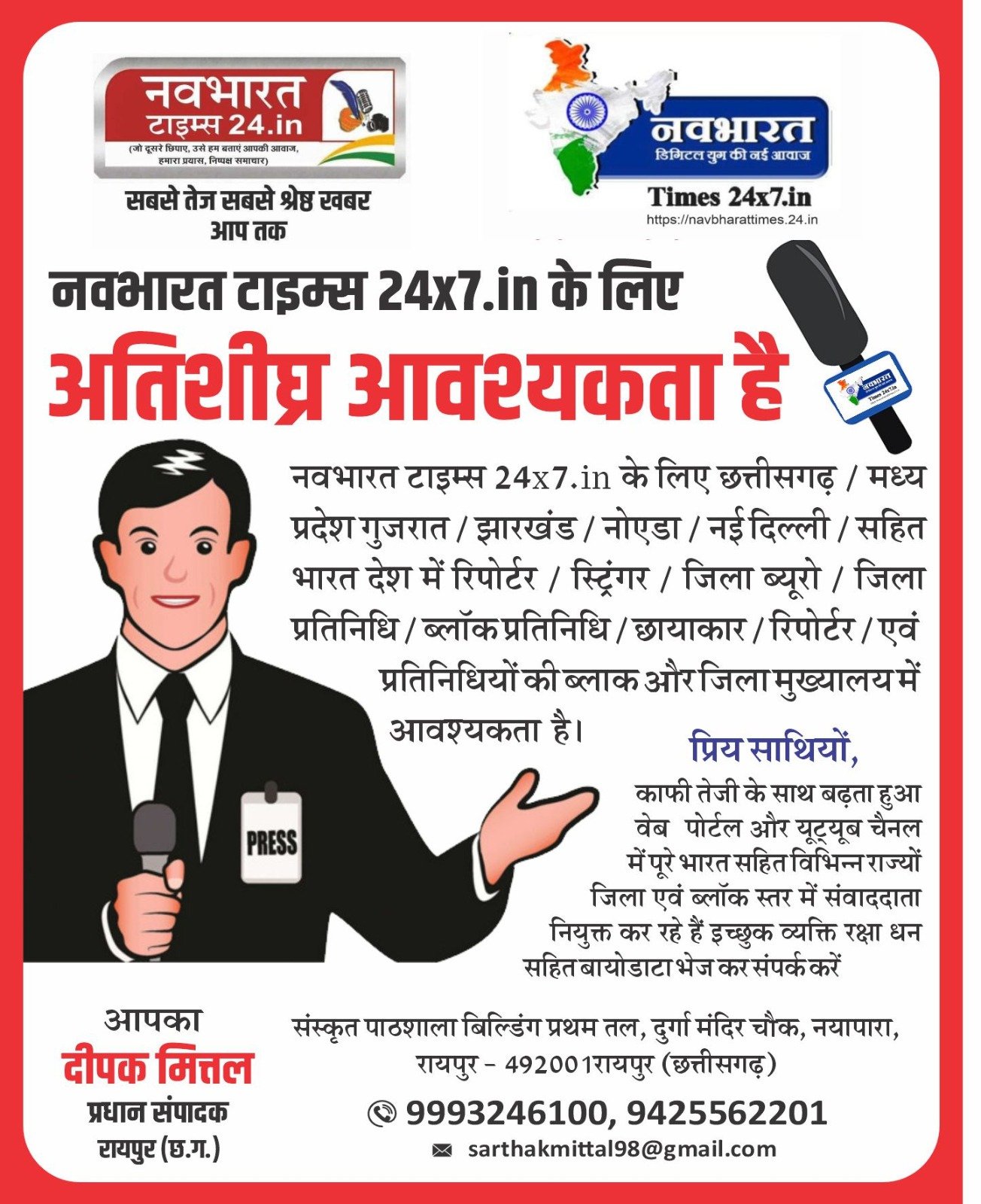 अखिलेश खटोड़ नवभारत टाइम्स 24 x7in ब्यूरो प्रमुख रायपुर