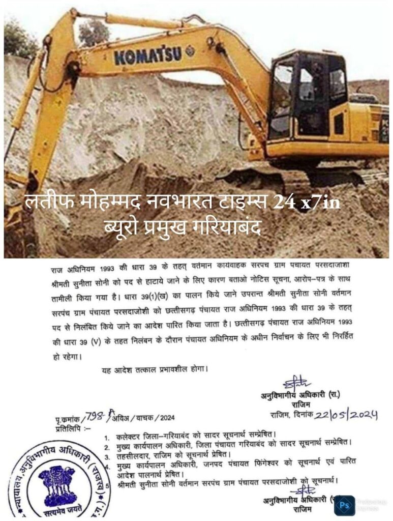 अवैध रेत खनन पर प्रशासन की बड़ी कार्रवाई, सरपंच को किया निलंबित,अवैध कार्यों में पाई गई संलिप्त