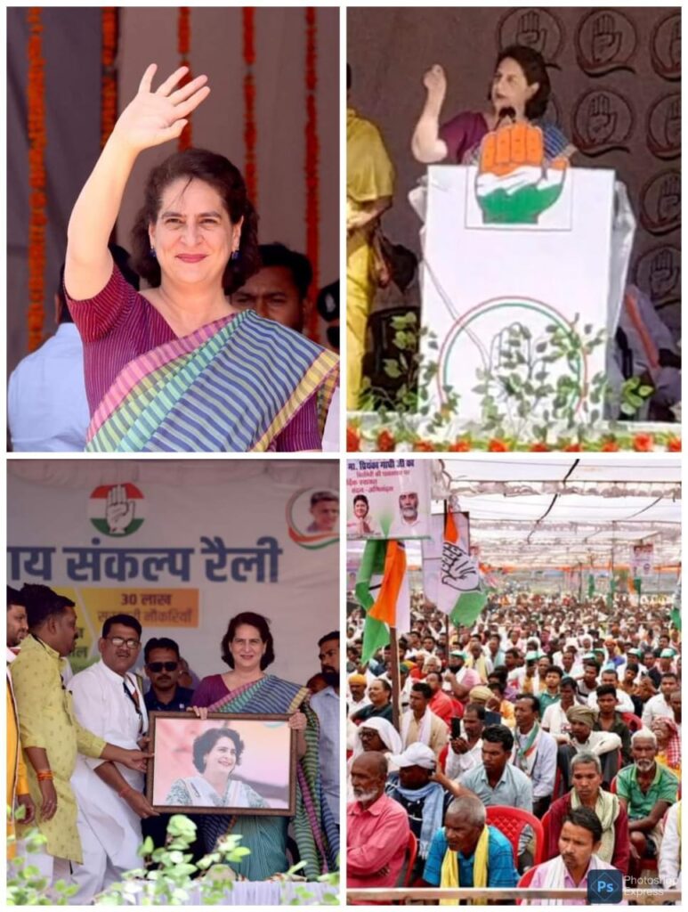 हर बार वह धर्म की बात करते हैं आपके धर्म को संकट में है बात कर आपको डराते हैं और फिर आपके 20 कीमती वोट ले लेते हैं आपको जागरूक होना है जब आप अपने संविधान को समझेंगे तब बदलाव आएगा आजादी का मतलब था आपको बुनियादी सुविधाएं मिले हमारे नेता लड़े अपनी जान की आहुतियां दी तब यह देश को आजादी मिली आपको जागरूक होना है कोई कुछ भी कहे भ्रमित नहीं होना है हमारे देश में परंपरा है आंदोलन की आजादी भी हमें आंदोलन से मिली आज आपके क्षेत्र में प्रकृति को संरक्षित करने वाले बेस कीमती पेड़ों को काटा जा रहा है देश की संपत्तियों को उद्योगपतियों को दिया जा रहा है उद्योगपति के द्वारा सभी पेड़ काटे जा रहे हैं जब लोगों ने इसका विरोध किया तो उनके घर जला दिए गए उन्हें बलपूर्वक दबाया जा रहा है हमने ग्रामीण क्षेत्रों में रोजगार के लिए रोजगार गारंटी थी अब शहरी क्षेत्र के रोजगार के लिए भी हमने योजना लाई है हम शहरी क्षेत्र के लोगों को भी 100 दिन रोजगार देना चाहते हैं, महिलाओं के बारे में श्रीमती गांधी ने कहा कि महिलाओं का संघर्ष हमेशा से बड़ा रहा है परिवार पालते हैं घरेलू कार्यों के अलावा अक्सर बाहर जाकर के रोजगार भी करना पड़ता हैं आप अपने बच्चों को ही नहीं पालते आप देश की नई पीढ़ी पाल रहे हैं महिला आरक्षण यह 10 वर्षों से लागू नहीं कर पा रहे हैं पूरे देश में महिलाओं पर खूब अत्याचार हो रहे हैं यह महिलाओं को 1000,, 1200 देने की बात करते हैं क्या 1000 में एक सिलेंडर मिल सकता है युवा रोजगार मांगते हैं तो उन्हें रोजगार नहीं दिया जा रहा है करोड लोग आज भी बेरोजगार हैं अग्नि वीर योजना युवाओं के साथ सरकार छलावा कर रही है उन्होंने महिलाओं को प्रतिमाह 8333 रुपए देने की बात कही साल में ₹100000 घर की प्रमुख महिला को दिया जाएगा जिसको लेकर महिलाओं में काफी उत्साह देखा गया