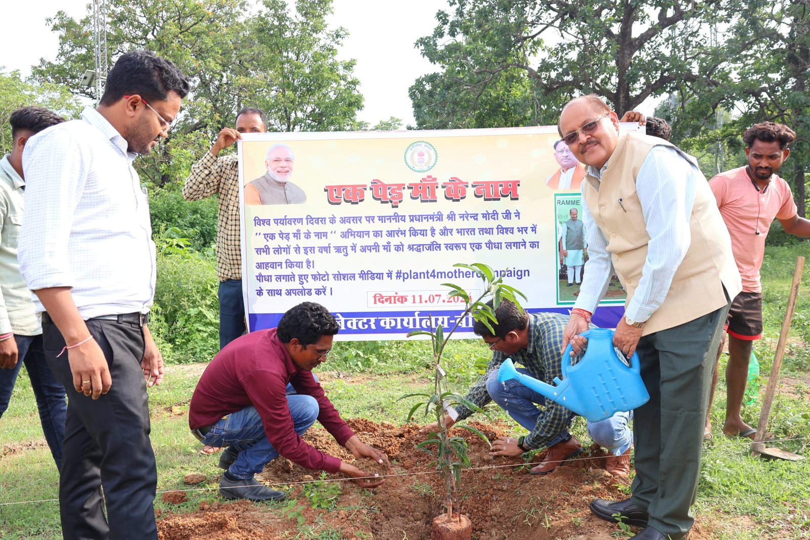 उल्लेखनीय है कि प्रधानमंत्री नरेन्द्र मोदी द्वारा 5 जून विश्व पर्यावरण दिवस के उपलक्ष्य में “एक पेड़ मां के नाम” योजना का शुभारंभ किया गया है। जिसके परिपालन में जिला स्तर पर वृहद रूप से वृक्षारोपण की कार्ययोजना बनाई गई है। शासकीय संस्थानों सहित स्वयं के निजी स्थानों में “एक पेड़ मां के नाम” के तहत वृक्षारोपण की जा रही है।