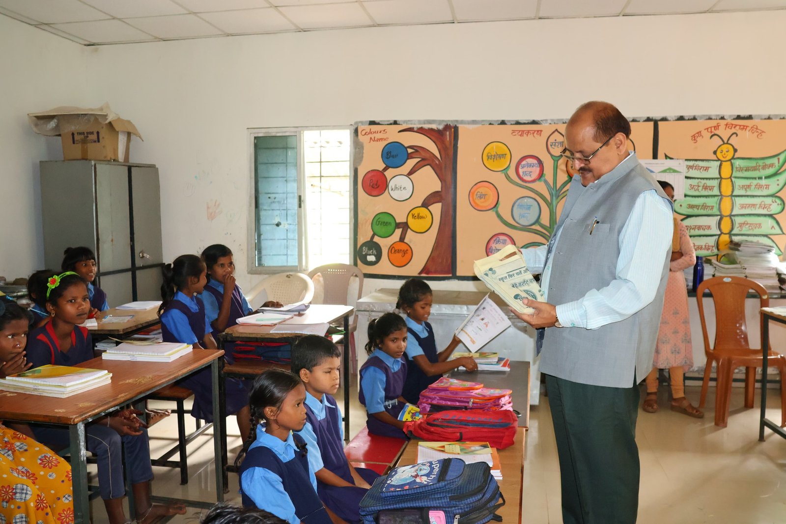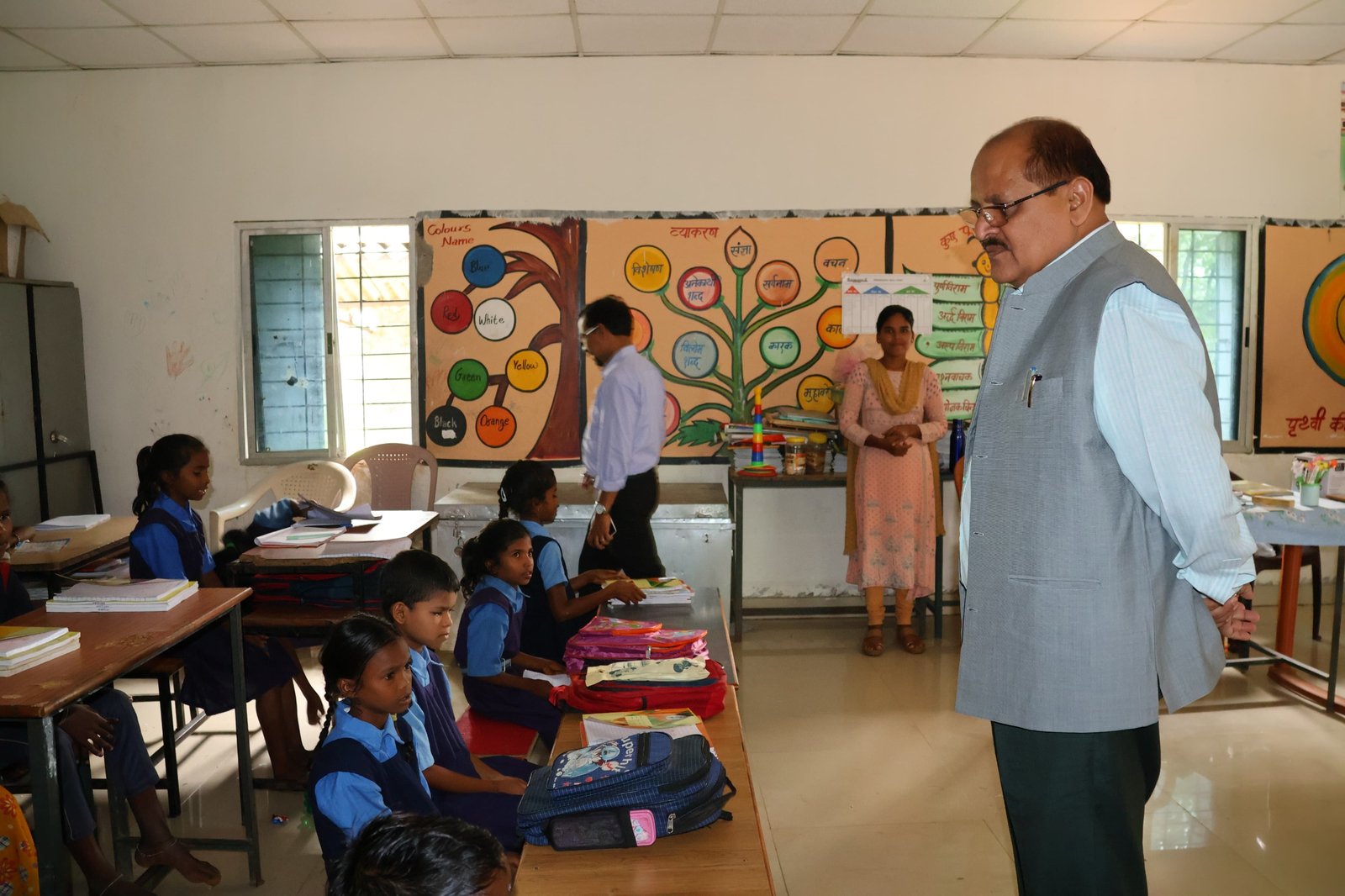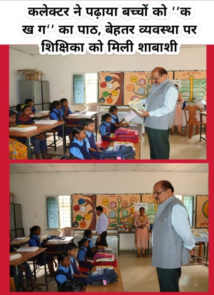 कलेक्टर ने पढ़ाया बच्चों को ‘‘क ख ग‘‘ का पाठ, बेहतर व्यवस्था पर शिक्षिका को मिली शाबाशी