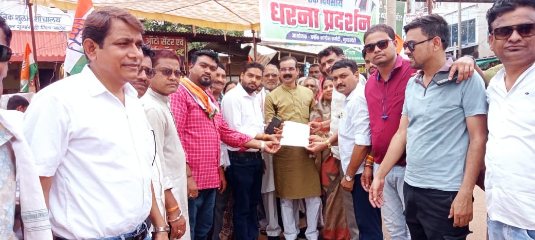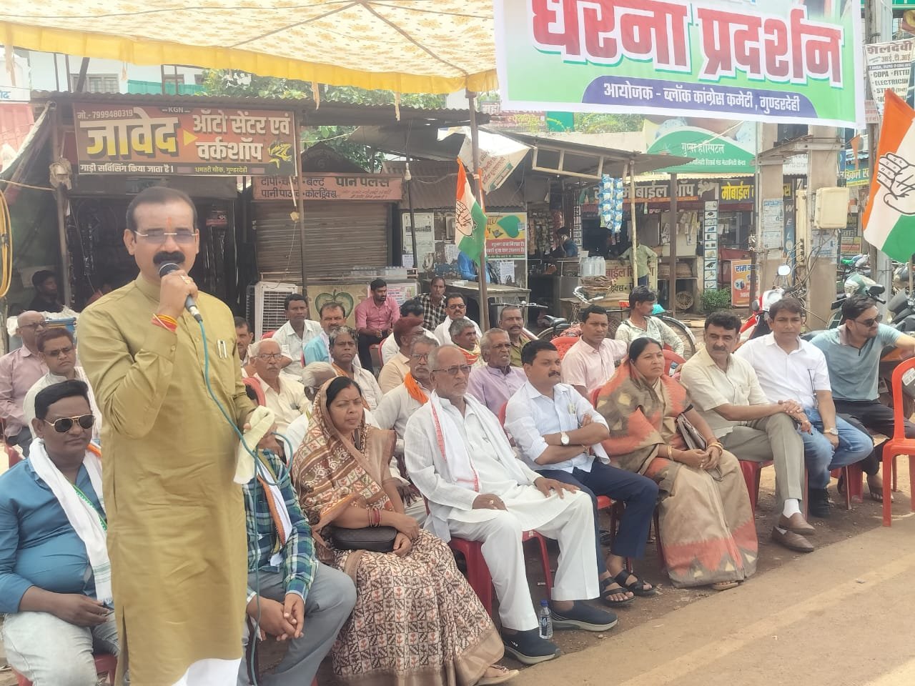गुंडरदेही में राज्य सरकार के खिलाफ कांग्रेसियों ने एक दिवसीय धरना प्रदर्शन किया गया