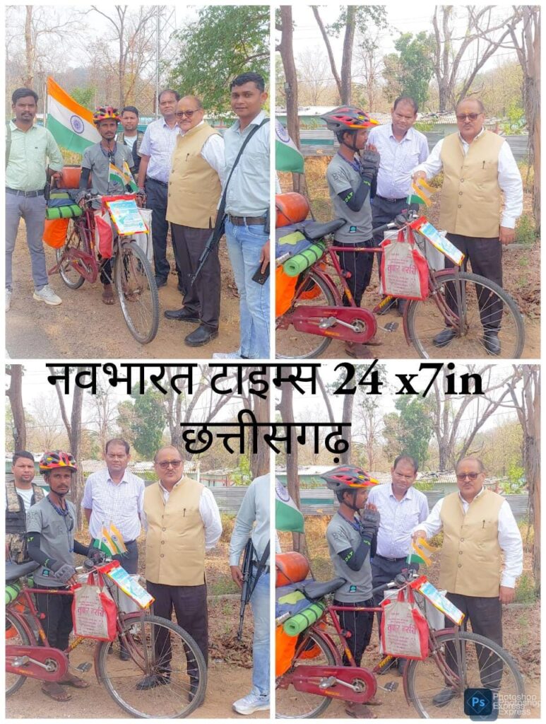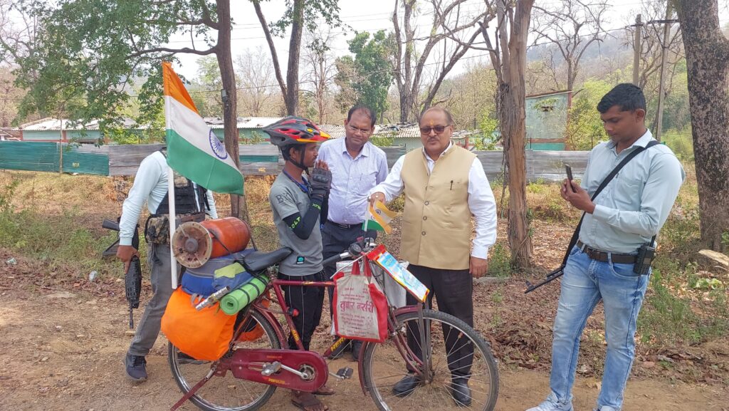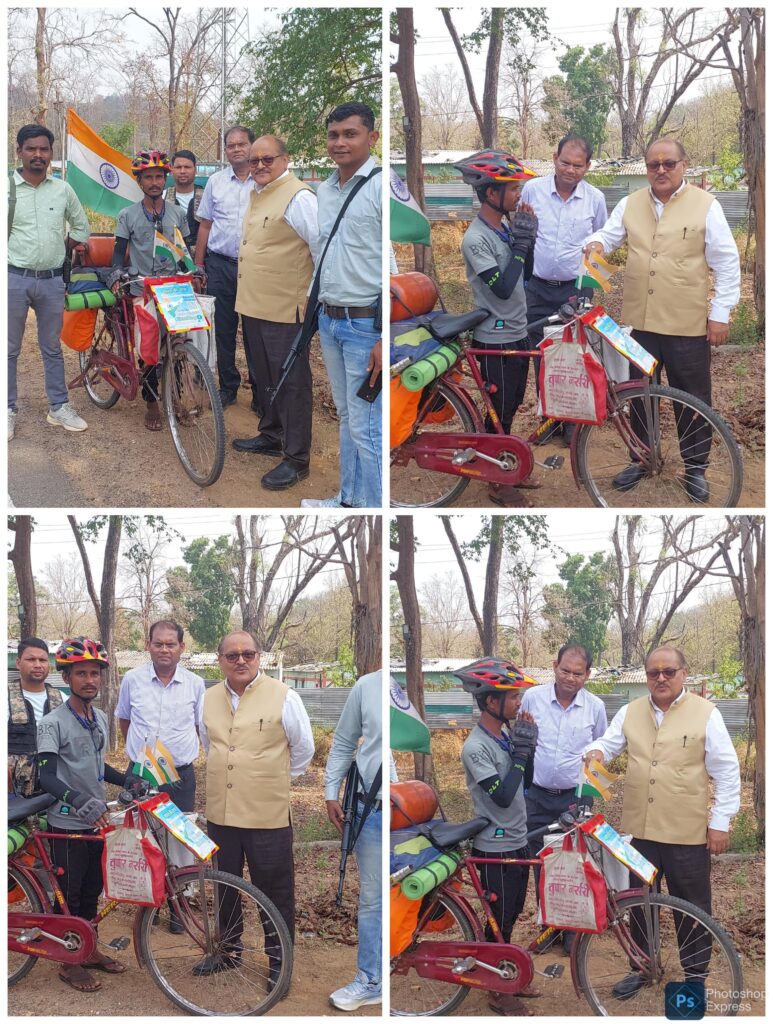 जल एवं पर्यावरण संरक्षण का संदेश लेकर भारत यात्रा में निकले युवा का कलेक्टर ने किया उत्साहवर्धन