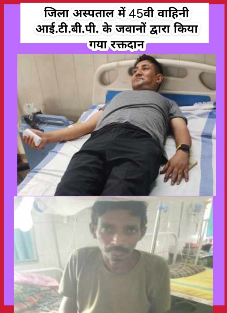 जिला अस्पताल में 45वी वाहिनी आई.टी.बी.पी. के जवानों द्वारा किया गया रक्तदान