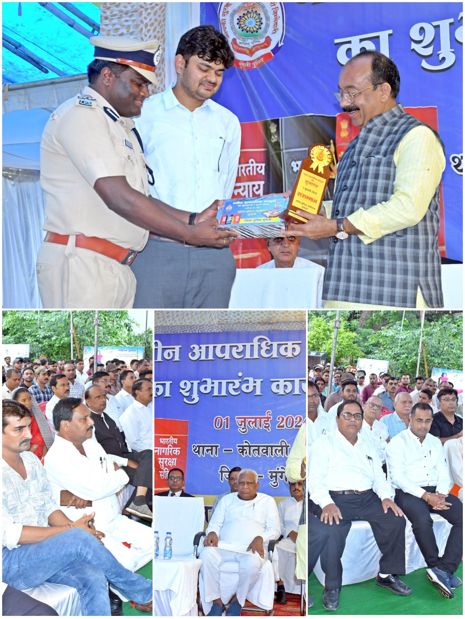 वरिष्ठ पुलिस अधीक्षक श्री गिरिजाशंकर जायसवाल ने नए कानून की उपयोगिता और उसके महत्व के संबंध में विस्तार से जानकारी दी। उन्होंने बताया कि आज से नए कानून के अनुसार कार्यवाहियां होगी। पूर्व में लागू कानून के समय परिस्थितियां अलग थी। आज समय के अनुसार काफी चीजों में बदलाव आ गया है। नए कानून का मुख्य उद्देश्य औपनिवेशिक कानूनों में बदलाव, नागरिक केन्द्रित एवं कल्याणकारी अवधारणा, महिला सुरक्षा एवं न्याय, अनुसंधान में वैज्ञानिक तकनीक, डिजीटल एवं इलेक्ट्रानिक साक्ष्य के प्रावधान, उचित नियंत्रण एवं संतुलन के साथ पुलिस का सामन्जस्यपूर्ण सशक्तिकरण और समयबद्ध प्रक्रिया, साक्ष्य संग्रह और प्रस्तुति की प्रक्रिया को सुव्यवस्थित करने के साथ ही मूल्यांकन में पारदर्शिता और निष्पक्षता को बढ़ावा देना है। इस अवसर पर वनमंडलाधिकारी श्री संजय यादव, नगर पालिका मुंगेली के अध्यक्ष श्री हेमेन्द्र गोस्वामी व उपाध्यक्ष श्री मोहन मल्लाह, जनपद पंचायत मुंगेली के उपाध्यक्ष श्री पवन पांडेय, श्री शैलेष पाठक, विभिन्न संगठनों के सदस्यगण, अन्य जनप्रतिनिधिगण, अधिवक्ता संघ मुंगेली के अध्यक्ष श्री टीकम चंद्राकर, वरिष्ठ नागरिकगण और बड़ी संख्या में नगरवासी मौजूद रहे। कार्यक्रम के समापन में मुख्य अतिथि को स्मृति चिन्ह और नवीन कानून से संबंधित किताब प्रदान कर सम्मानित किया। आभार प्रदर्शन अतिरिक्त पुलिस अधीक्षक श्री पंकज पटेल ने किया।