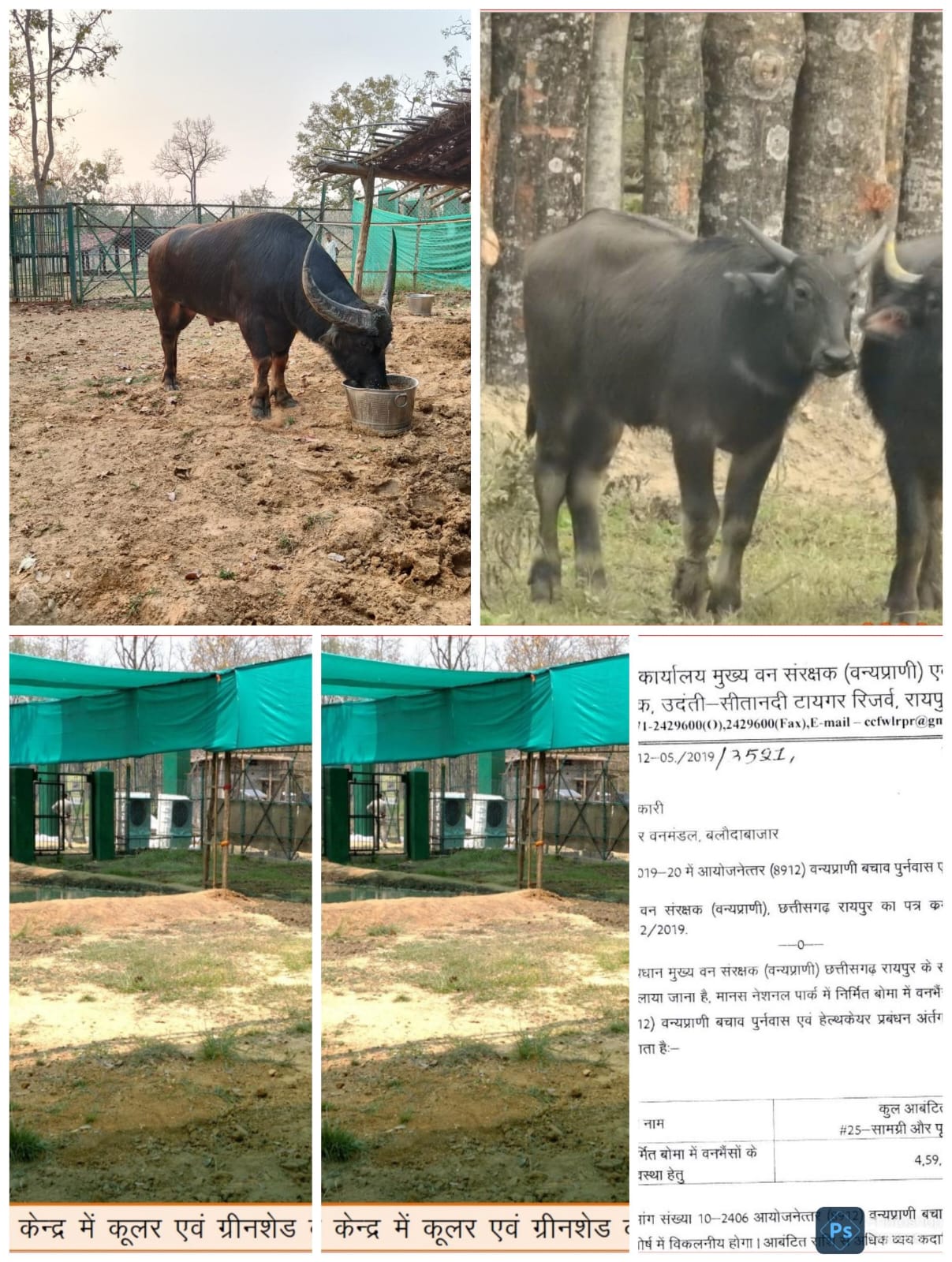 रायपुर 12 मई/ वर्ष 2020 में असम से बारनवापारा अभ्यारण लाये गए ढाई साल के दो सब एडल्ट वन भैंसों को असम के मानस टाइगर रिज़र्व से पकड़ने के बाद दो माह वहां बाड़े में रखा गया, एक नर था और एक मादा। वहां पानी पिलाने की व्यवस्था के लिए चार लाख 4,56,580 रुपए का बजट दिया गया। जब ये बारनवापारा लाये गए तब उनके लिए रायपुर से 6 नए कूलर भिजवाए गए, निर्णय लिया गया की तापमान नियंत्रित न हो तो एसी लगाया जाए, ग्रीन नेट भी लगाई गई।
