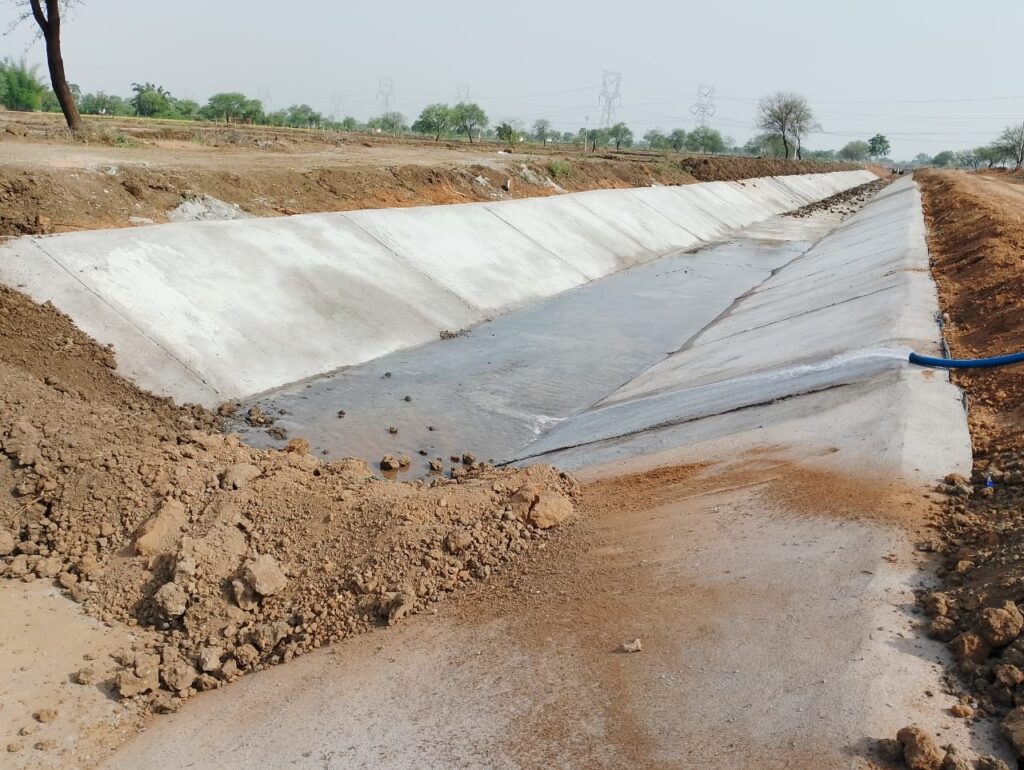 धनगांव में चल रहे नहर लाइनिंग कार्य में स्लीपर को तोड़कर बनाया गया पुनः नया