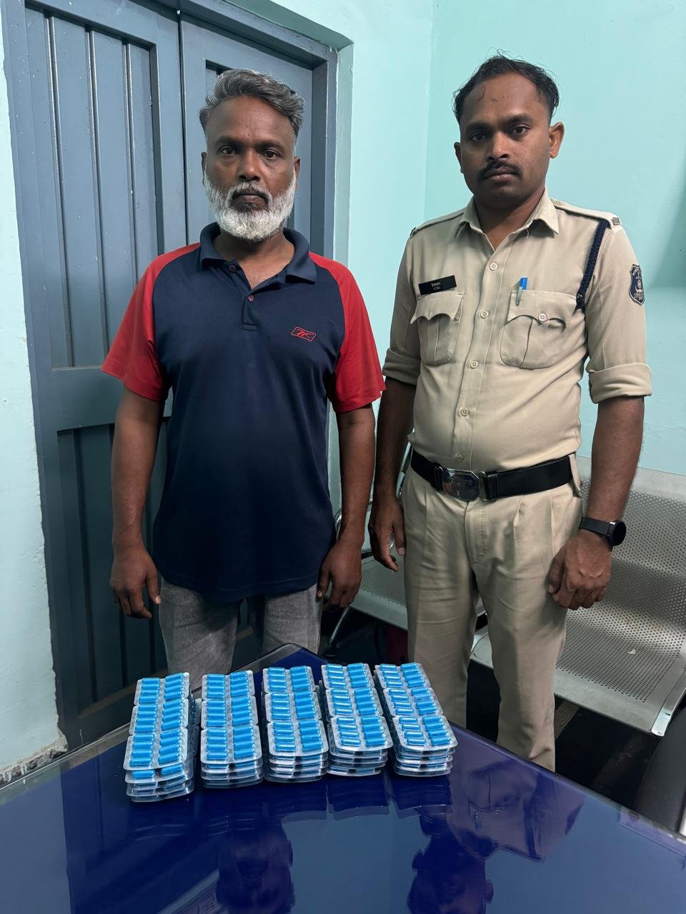 जिस पर वरिष्ठ अधिकारियों के निर्देशन व थाना प्रभारी तेलीबांधा के नेतृत्व में थाना तेलीबांधा पुलिस की टीम द्वारा उक्त स्थान पर जाकर मुखबीर द्वारा बताये हुलिये के व्यक्ति को चिन्हांकित कर पकड़ा गया। पूछताछ में व्यक्ति ने अपना नाम शेख रहमान कुरैशी निवासी कांशीराम नगर तेलीबांधा रायपुर का होना बताया। टीम के सदस्यों द्वारा उसके पास रखें बैग की तलाशी लेने पर बैग में प्रतिबंधित नशीली टेबलेट स्पासमों रखा होना पाया गया। उक्त प्रतिबंधित नशीली टेबलेट रखने/बिक्री करने के संबंध में वैध दस्तावेज या अन्य कागजात प्रस्तुत करने कहने पर उसके द्वारा किसी भी प्रकार का कोई वैध दस्तावेज या कागजात प्रस्तुत न कर टीम के सदस्यों को लगातार गुमराह करने का प्रयास किया जा रहा था।