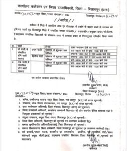 बिलासपुर, दिनांक 16/12/24: वर्तमान में जिले में अत्यधिक ठण्ड एवं शीतलहर के प्रकोप के कारण बच्चों के स्वास्थ्य को दृष्टिगत रखते हुए बिलासपुर जिले में संचालित समस्त शासकीय / अशासकीय / अनुदान प्राप्त / सी.बी.एस.ई. पाठ्यक्रम संचालित विद्यालयों के संचालन समय में तत्काल प्रभाव से निम्नानुसार परिवर्तन किया जाता है:
