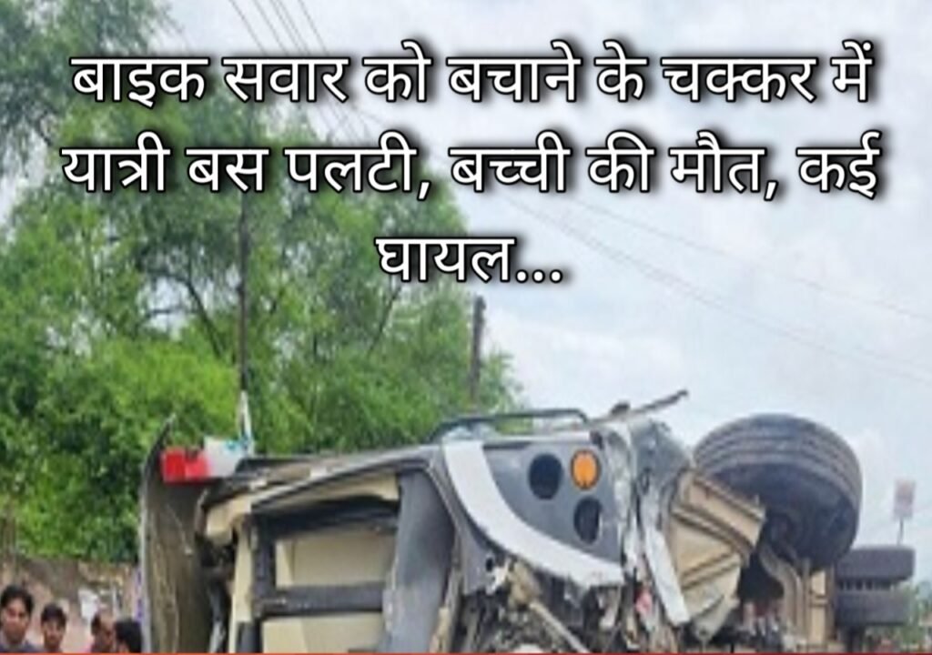 बाइक सवार को बचाने के चक्कर में यात्री बस पलटी, बच्ची की मौत, कई घायल…