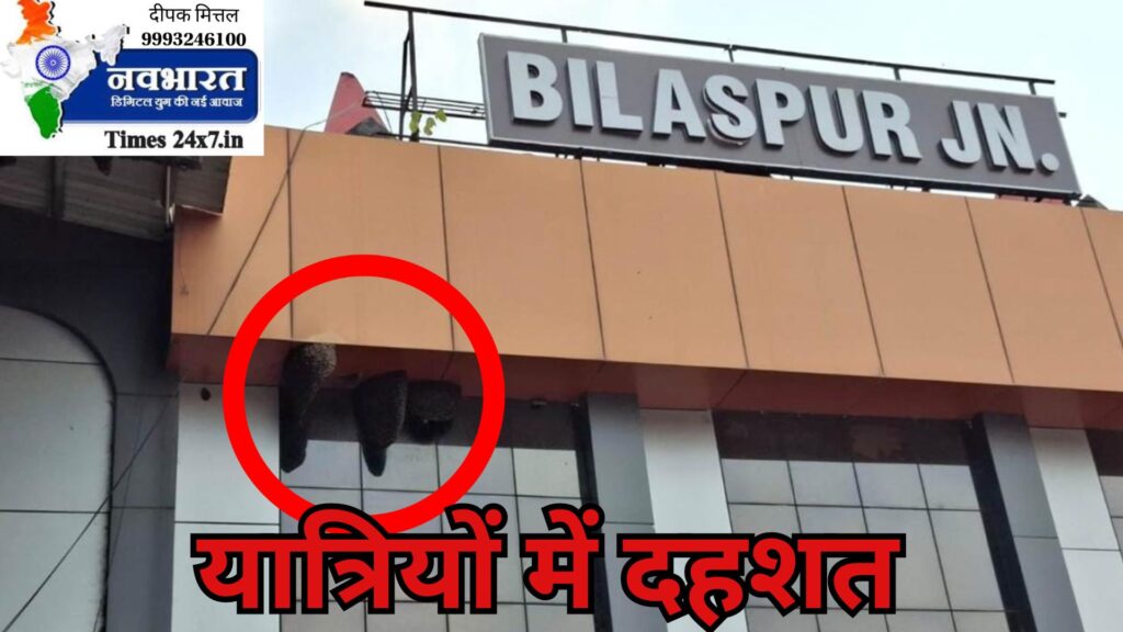 बिलासपुर। जोनल रेलवे स्टेशन के प्रवेश द्वार पर मधुमक्खियों के विशाल छत्ते यात्रियों के लिए बड़ी परेशानी का कारण बन गए हैं। प्रवेश द्वार क्रमांक तीन के सामने मधुमक्खियों के तीन बड़े-बड़े छत्ते हैं, जिससे यात्री घबराते हैं और स्टेशन में प्रवेश करने से कतराते हैं। तेज हवा चलने पर मधुमक्खियां छत्तों से निकलकर यात्रियों के चारों ओर मंडराने लगती हैं।