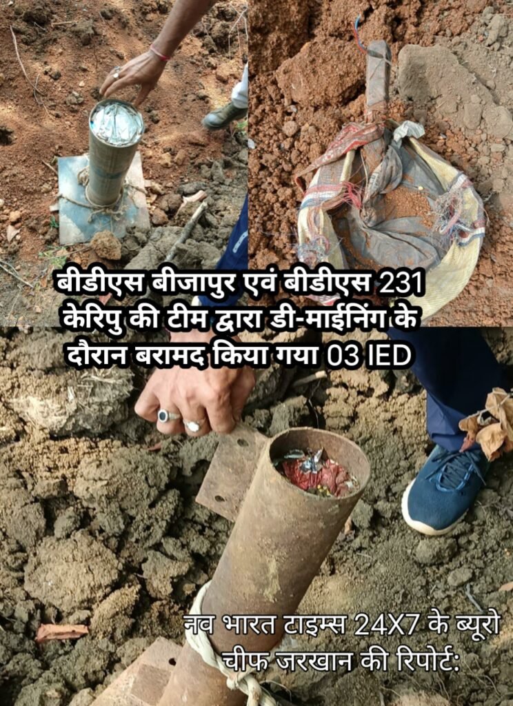 बीडीएस बीजापुर एवं बीडीएस 231 केरिपु की टीम द्वारा डी-माईनिंग के दौरान बरामद किया गया 03 IED