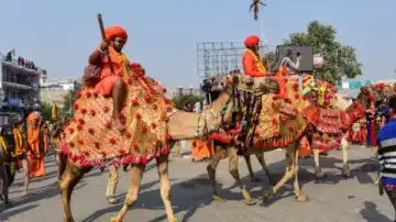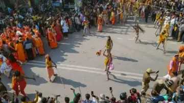 2. प्रयागराज की सड़कों पर इन दिनों जहां नजर जाएं, साधु-संतों के अखाड़े और अलग-अलग जगहों से आने वाले साधुओं से ही पटी हुई नजर आ रही है। कोई ऊंट पर सवार होकर काला चश्मा लगाए बड़े ही शान से महाकुंभ में शामिल होने पहुंच रहे हैं तो कोई लाठियां भांजते हुए अलग ही नजारा प्रस्तुत कर रहे हैं।