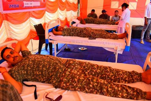 नारायणपुर,,,माओवादी मोर्चों एवं देश की सुरक्षा में अपना तन मन समर्पित करनें वाली भारत तिब्बत सीमा पुलिस के हिमवीरों द्वारा जरुरतमंदो के लिए समय-समय पर रक्तदान कर दूरस्थ नक्सल प्रभावित अंचलों में सामाजिक उतरदायित्वों का निर्वहन बडी तत्परता के साथ किया जाता रहा है। अपने इसी सेवाभाव तथा जनकल्याणकारी नितियों के अंतर्गत 03 जुलाई को 53वीं वाहिनी भारतीय तिब्बत सीमा पुलिस बल के तत्वाधान में जेलवाडी कैम्प परिसर में जिला चिकित्सालय नारायणपुर के सौजन्य से रक्तदान शिविर का आयोजन किया गया। श्री अमित भाटी, सेनानी 53 वी० वाहिनी के नेतृत्व में श्री अरविन्द कश्यप, उप सेनानी एवं डा० सपना, मु०चि० अधिकारी एवं मेडिकल स्टाफ के प्रयासों से रक्तदान शिविर में भा०ति०सी०पुलिस के 30 पदाधिकारियों द्वारा स्वैच्छिक रुप से रक्तदान किया गया।