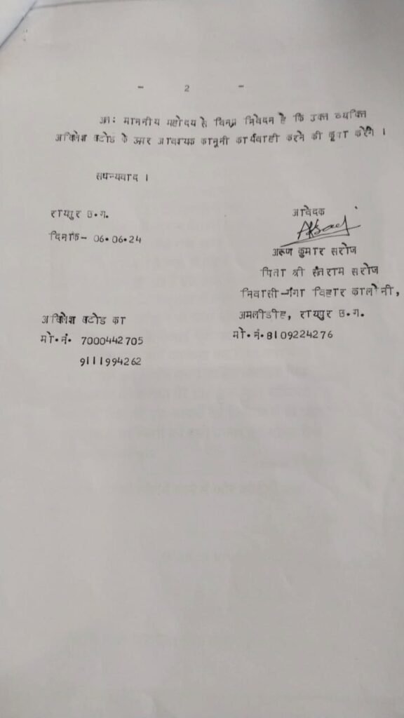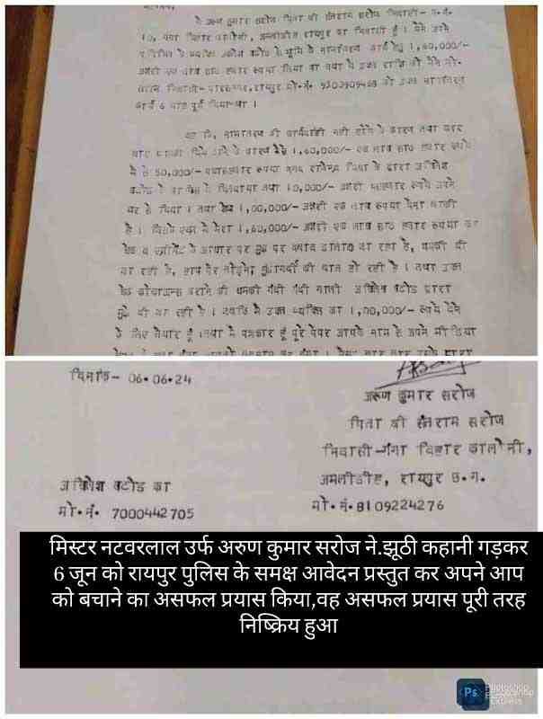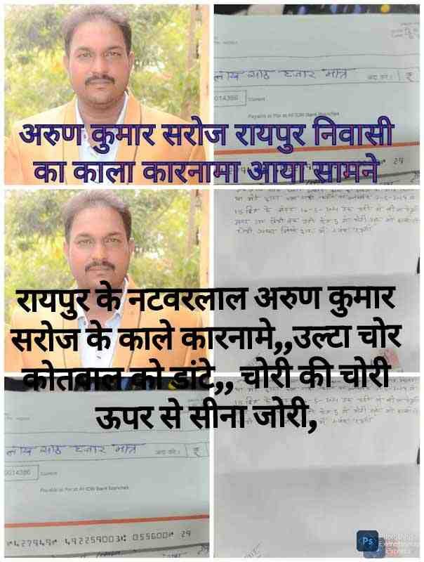 अरुण कुमार सरोज रायपुर निवासी का काला कारनामा आया सामने,,