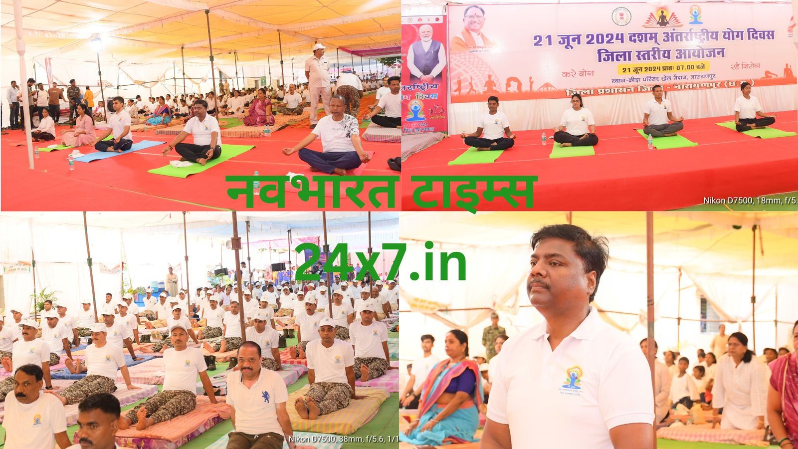 नारायणपुर,प्रदेश के वन एवं जलवायु परिवर्तन, जल संसाधन, कौशल विकास एवं सहकारिता मंत्री केदार कश्यप के मुख्य आतिथ्य में आज दसवां अंतर्राष्ट्रीय योग दिवस जिला नारायणपुर में पूरे उत्साह के साथ मनाया गया। “स्वयं और समाज के लिए योग” थीम पर विश्व पटल पर अंतर्राष्ट्रीय योग दिवस मनाया गया। जिला मुख्यालय में अन्तर्राष्ट्रीय योग दिवस का आयोजन नारायणपुर के क्रीड़ा परिसर खेल मैदान में आयोजित किया गया। इस अवसर पर मंत्री केदार कश्यप सहित क्षेत्र के जनप्रतिनिधि, अधिकारी-कर्मचरियों और आम नागरिकों ने सवेरे 7 बजे से 8 बजे तक योग किया।
