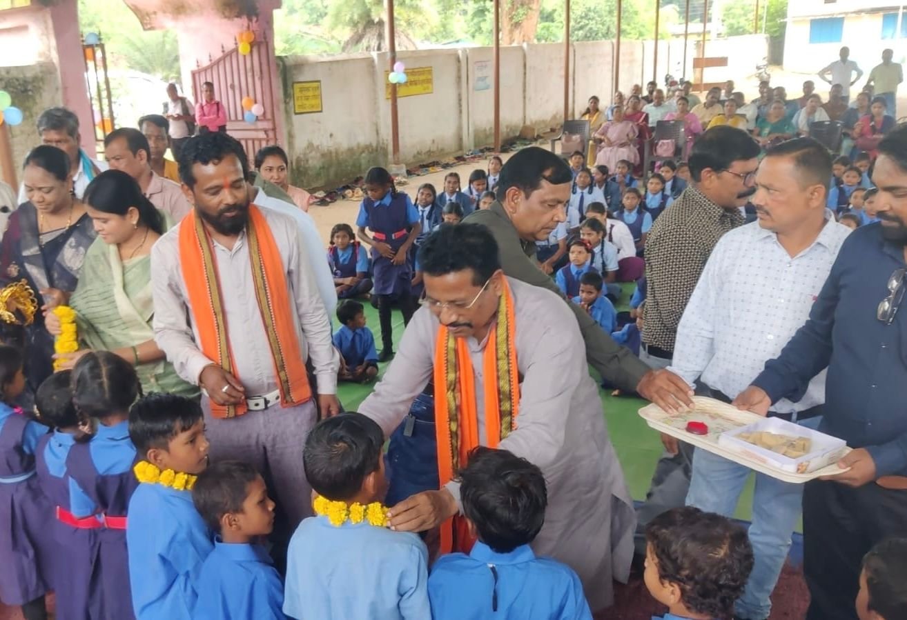 शाला प्रवेश उत्सव – विधायक ने शाला में नव प्रवेशी बच्चों को किया पुस्तक एवं गणवेश वितरण
