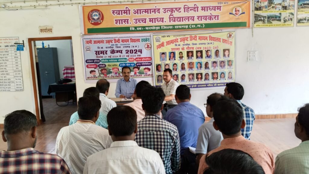 घरघोड़ा- स्वामी आत्मानंद उत्कृष्ट हिंदी माध्यम विद्यालय रायकेरा में राज्य प्रशासन, जिला प्रशासन रायगढ़ व जिला शिक्षा अधिकारी रायगढ़ के निर्देशानुसार एवं संकुल प्राचार्य श्री एस. के. करण द्वारा शिक्षा सत्र 2024-25 में विद्यालय के सफल संचालन हेतु *संकुल रायकेरा एवं बिछीनारा* अंतर्गत सभी प्राथमिक शाला, माध्यमिक शाला के संस्था प्रमुखों एवं स्वामी आत्मानंद उत्कृष्ट हिंदी माध्यम विद्यालय रायकेरा के शिक्षकों की एक अति आवश्यक बैठक दिनांक 15 जून 2024 को लिया गया| जिसमें आने वाले सत्र 2024–25 हेतु शाला प्रवेश उत्सव की तैयारी, पाठ्य पुस्तक पुस्तक वितरण एवं गणवेश वितरण, मध्यान्ह भोजन एवं न्योता भोज , जाति प्रमाण पत्र एवं निवास प्रमाण पत्र , पालक- शिक्षक सम्मेलन , शाला प्रबंधन एवं विकास समिति तथा शाला प्रबंधन समिति बैठक, RTE से संबंधित जानकारी, यूथ एवं इको क्लब, योग दिवस , विद्यार्थी प्रवेश की वर्तमान स्थिति, बालवारी का संचालन , स्मार्ट क्लास की स्थिति , F L N ट्रेनिंग , प्राथमिक शाला के विद्यार्थियों को 2 से 10 तक का पहाड़ा एवं माध्यमिक शाला के विद्यार्थियों को 2 से 20 तक का पहाड़ रटवाना , समस्त प्रकार की छात्रवृत्ति , उल्लास नवभारत साक्षरता कार्यक्रम, किशोर आत्महत्या रोकथाम पर ऑनलाइन दीक्षा एप पर कोर्स, अध्यापन व्यवस्था ,पेयजल व्यवस्था ,विद्यालय परिसर की साफ -सफाई , विद्यालय की रंग- रोगन एवं अन्य बिंदुओं पर विस्तार पूर्वक चर्चा की गई ।