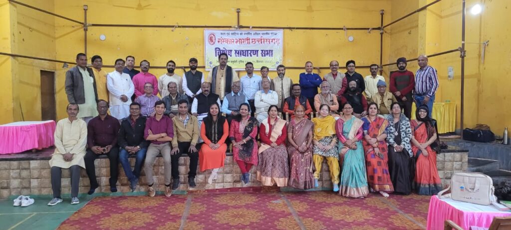 संस्कार भारती छत्तीसगढ़ की विशेष प्रांतीय साधारण सभा का आयोजन राष्ट्रीय स्वयंसेवक संघ के प्रांत संघचालक टोप लाल वर्मा के मुख्य आतिथ्य , निरंजन पंडा अखिल भारतीय लोक कला विभाग संयोजक , अनिल जोशी मध्य क्षेत्र प्रमुख , रिखी क्षत्रिय प्रांत अध्यक्ष , डॉ माणिक विश्वकर्मा प्रांत कार्याध्यक्ष , शशांक शर्मा जिला अध्यक्ष रायपुर की उपस्थिति में बैस भवन सुंदर नगर रायपुर में संपन्न हुआ ।