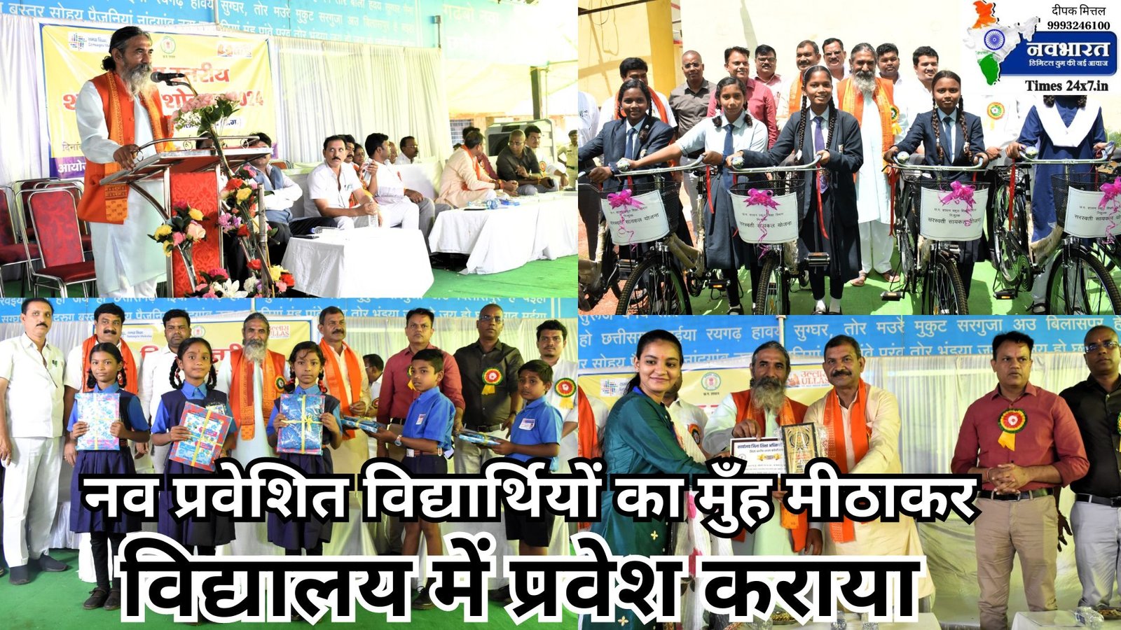 कार्यक्रम को संबोधित करते हुए वरिष्ठ जन प्रतिनिधि पवन साहू ने कहा कि हम सभी के लिए सौभाग्य का विषय है कि आज आयोजित जिला स्तरीय प्रवेशोत्सव कार्यक्रम में नव प्रवेशित विद्यार्थियों का स्वागत अभिनंदन कर उन्हें शाला में प्रवेश दिलाया जा रहा है। उन्होंने कहा कि हमारी सरकार की मंशा है कि समाज का कोई भी बच्चा शाला में प्रवेश होेने से तथा गुणवत्तायुक्त शिक्षा अर्जित करने से वंचित न रहे। इस शाला प्रवेशोत्सव के माध्यम से विद्यार्थियों में अनुशासन एवं संस्कार का भी बीजारोपण करने का पूनीत कार्य किया जा रहा है। उन्होंने शिक्षकों के कार्य पर प्रकाश डालते हुए कहा कि शिक्षक हमारे राष्ट्र के निर्माता होते हंै जो विद्यार्थी रूपी गीली मिट्टी को सुंदर आकार में ढालते हैं। कलेक्टर इन्द्रजीत सिंह चन्द्रवाल ने कहा कि आज आयोजित जिला स्तरीय शाला प्रवेशोत्सव समारोह में यह विशेष उल्लेखनीय है कि इस कार्यक्रम के माध्यम से जिले के मेधावी विद्यार्थियों का भी सम्मान किया गया है। इस अवसर पर उन्होंने नव प्रवेशित विद्यार्थियों एवं उनके पालकों को भी हार्दिक बधाई एवं शुभकामनाएं दी। चन्द्रवाल ने कहा कि सरकार सभी बच्चों को अनिवार्य एवं गुणवत्तायुक्त शिक्षा प्रदान करने के लिए प्रतिबद्ध है। उन्होंने सभी पालकों को अनिवार्य रूप से अपने बच्चों को शाला में प्रवेश कराने की अपील की। चन्द्रवाल ने कहा कि वर्तमान शिक्षा सत्र से प्रत्येक शालाओं में तीन-तीन माह के अंतराल में पालक-बालक सम्मेलन का आयोजन किया जाएगा। इस अवसर पर उन्होंने अतिथियों को कार्यक्रम में अपनी उपस्थिति प्रदान करने के लिए हृदय से धन्यवाद ज्ञापित करते हुए उनके प्रति विनम्र आभार व्यक्त किया। कार्यक्रम मेें स्वागत भाषण प्रस्तुत करते हुए जिला शिक्षा अधिकारी पीसी मरकले ने शासन द्वारा सभी को अनिवार्य शिक्षा प्रदान करने हेतु चलाए जा रहे योजनाओं तथा शाला प्रवेशोत्सव के आयोजन के उद्देश्यों के संबंध में जानकारी दी। समारोह में शिक्षा सत्र 2023-24 में कक्षा 10वीं एवं 12वीं की परीक्षा में राज्य स्तरीय प्राविण्य सूची में स्थान बनाने वाले मेधावी विद्यार्थियों को प्रशस्ति प्रदान कर सम्मानित भी किया गया। समारोह में अतिथियों के द्वारा शाला परिसर में वृक्षारोपण भी किया गया। इस अवसर पर अतिथियों के द्वारा 9वीं कक्षा के छात्राओं को सरस्वती सायकल वितरण योजना के अंतर्गत सायकल भी प्रदान किया गया। कार्यक्रम मेें एसडीएम शिवनाथ बघेल, पंचायत विभाग के उपसंचालक आकाश सोनी, जनपद पंचायत के मुख्य कार्यपालन अधिकारी रोशनी भगत टोप्पो, डीएमसी अनुराम त्रिवेदी, विकासखण्ड शिक्षा अधिकारी हिमांशु मिश्रा सहित अन्य अधिकारी-कर्मचारी, शिक्षक-शिक्षिका, विद्यार्थी एवं ब