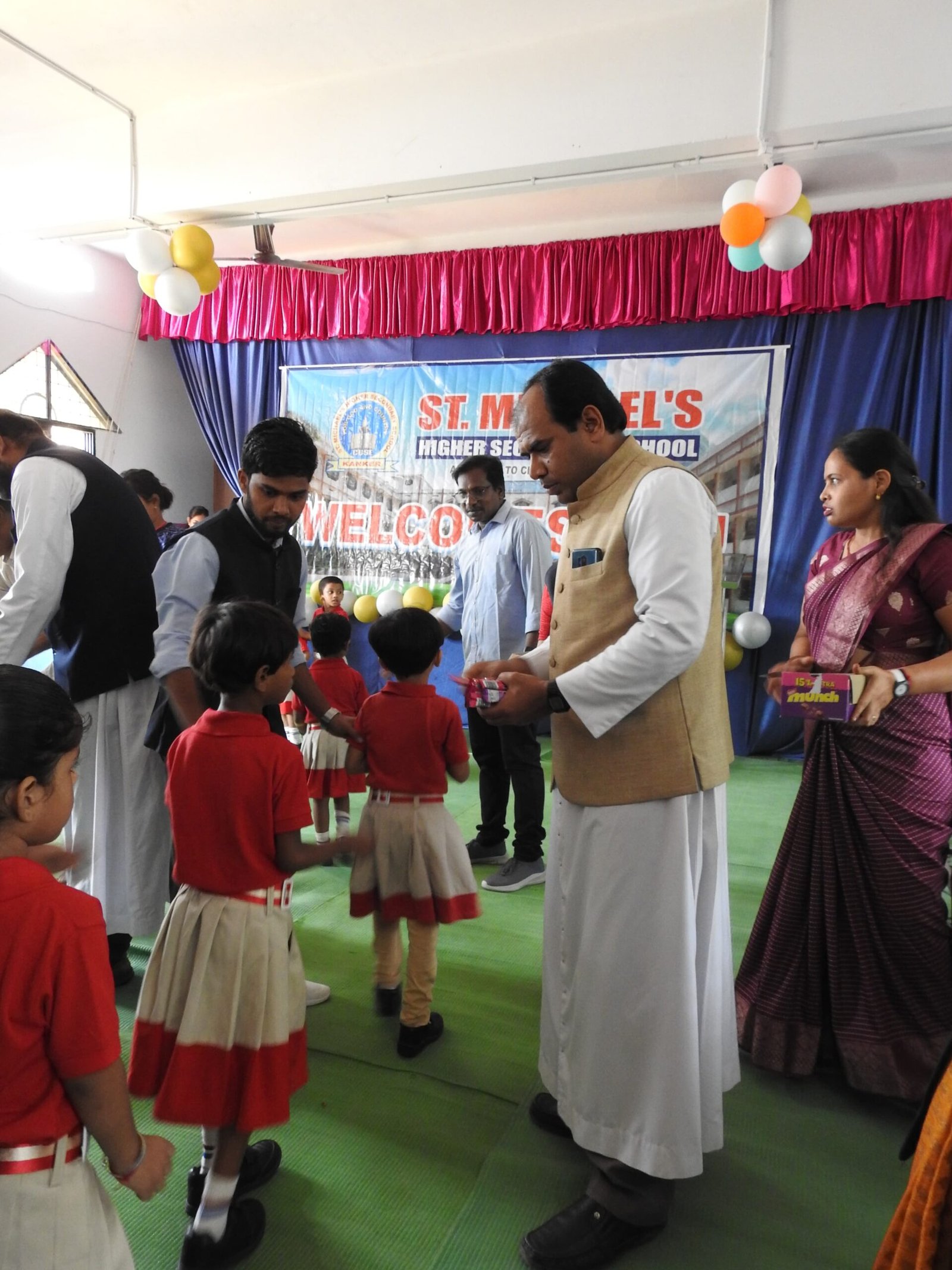 कल नर्सरी क्लास के बच्चों का शाला प्रवेश सेंट माइकल्स के नवीन भवन जिसमें की लिफ्ट एवं अन्य बच्चों की सुविधा को ध्यान में रखते बनाया गया है में उत्सव मनाया गया इस दौरान जो प्रविष्टि विद्यार्थियों का आत्मीय स्वागत किया गया