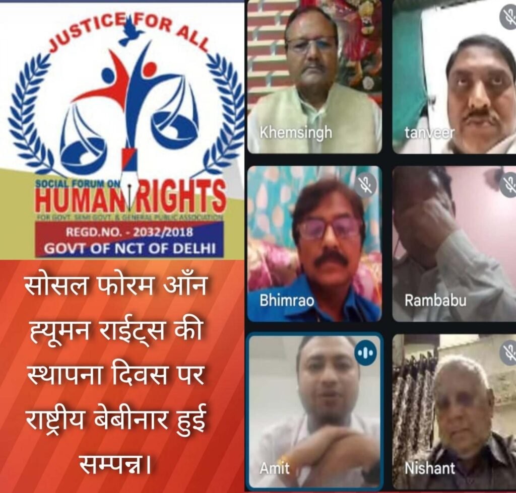 सोसल फोरम आँन ह्यूमन राईट्स की स्थापना दिवस पर राष्ट्रीय बेबीनार हुई सम्पन्न।