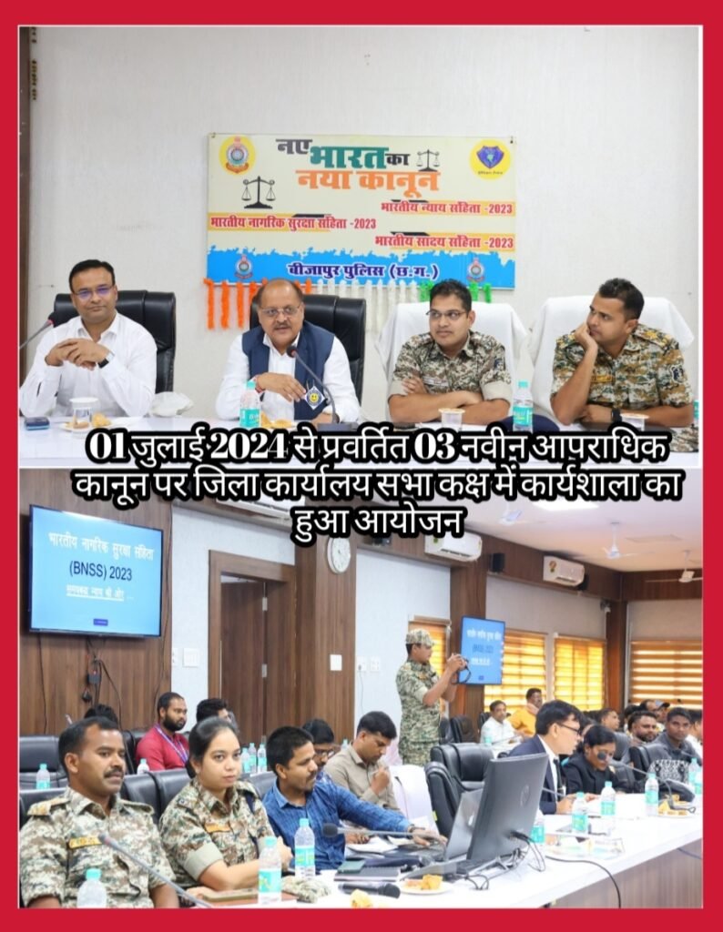 01 जुलाई 2024 से प्रवर्तित 03 नवीन आपराधिक कानून पर जिला कार्यालय सभा कक्ष में कार्यशाला का हुआ आयोजन