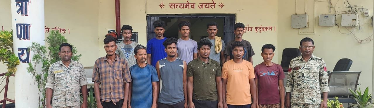थाना कोतवाली एवं डीआरजी के बल द्वारा शासन विरोधी नारें, बंद के आह्वान आदि के बैनर एवं पाम्पलेट के साथ गोरना-पड़ियापारा से 11 माओवादियों को पकड़ा गया