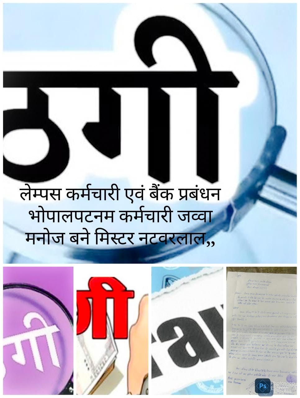 जरखान,,नवभारत टाइम्स 24 x7in जिला बीजापुर ब्यूरो प्रमुख लेम्पस कर्मचारी एवं बैंक प्रबंधन भोपालपटनम कर्मचारी जव्वा मनोज बने मिस्टर नटवरलाल,, भोले भाले आदिवासियों को