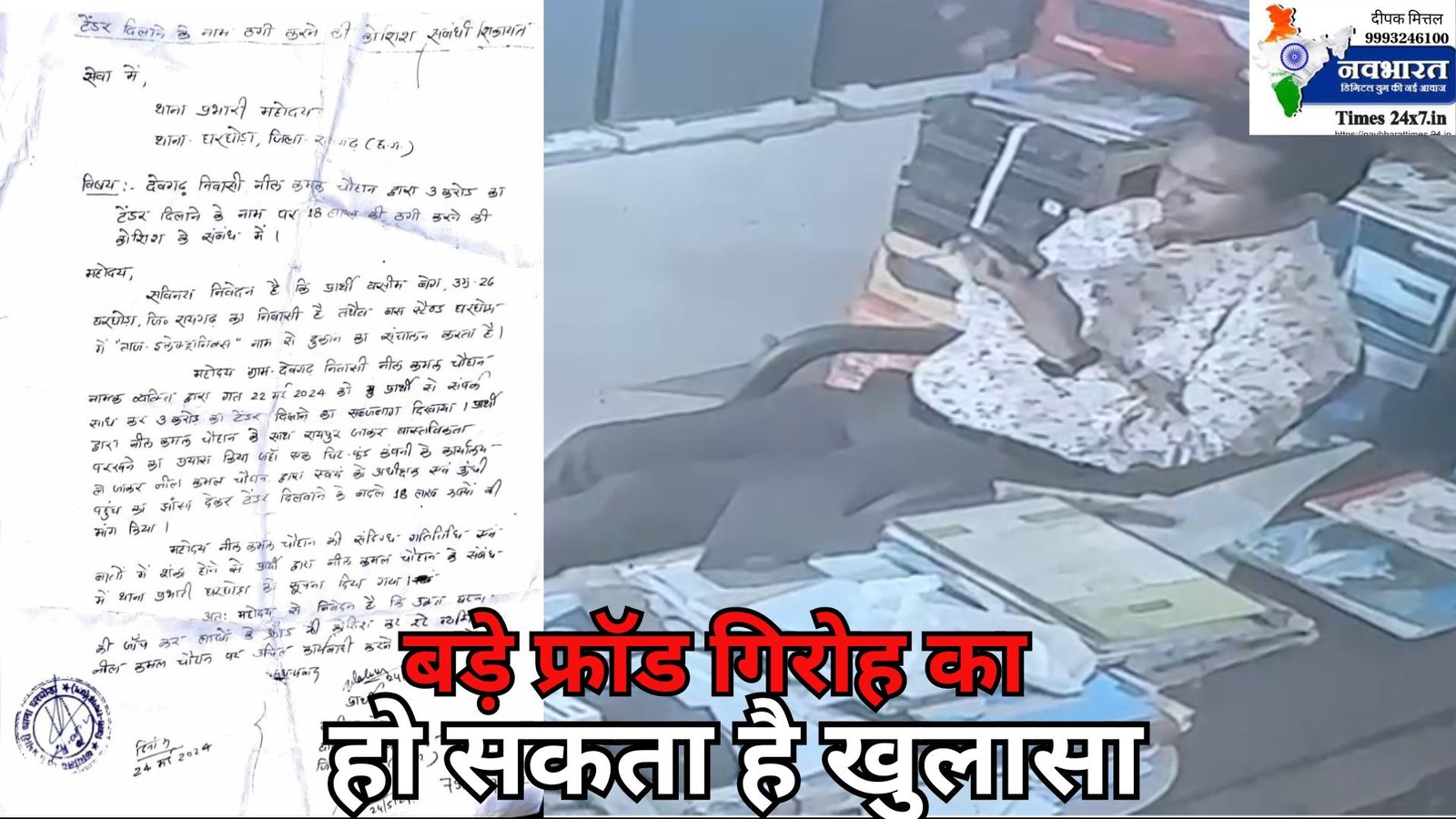 *अखिलेश खटोड़ नवभारत टाइम्स 24 x7in ब्यूरो प्रमुख रायपुर* खूबीराम साहू के द्वारा थाना आकर रिपोर्ट दर्ज कराया गया कि वार्ड क्र0 17