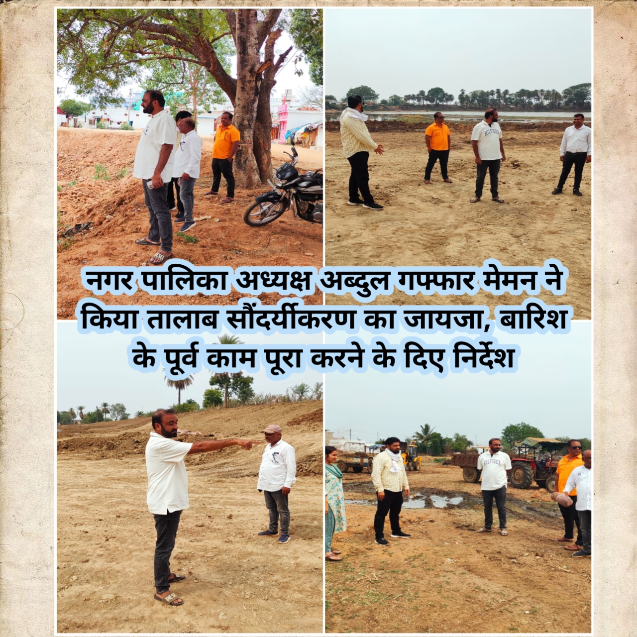 ईश्वर सिंह यादव नवभारत टाइम्स 24X7.in ब्यूरो प्रमुख गरियाबंद नगर पालिका अध्यक्ष अब्दुल गफ्फार मेमन ने किया तालाब सौंदर्यीकरण का जायजा, बारिश के पूर्व