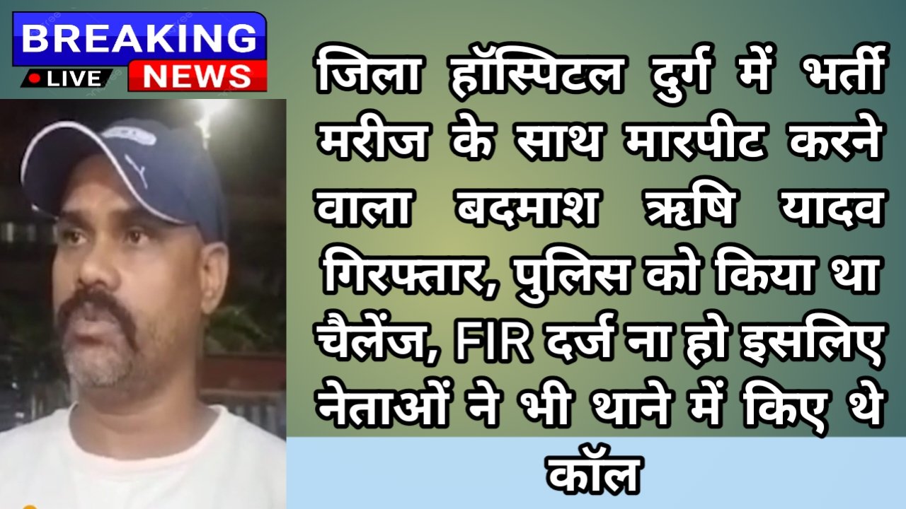 जिला हॉस्पिटल दुर्ग में भर्ती मरीज के साथ मारपीट करने वाला बदमाश ऋषि यादव गिरफ्तार, पुलिस को किया था चैलेंज, FIR दर्ज ना हो इसलिए