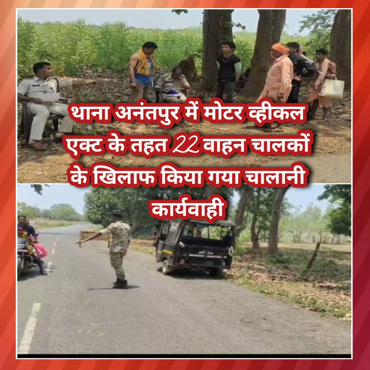 विनोद साहू नवभारत टाइम्स 24 x7in ब्लाक प्रमुख मांकड़ी दिनांक 16.06.2024 को सड़क दुर्घटनाओं में कमी लाने थाना अनंतपुर में चलाए गए विशेष मोटर वाहन