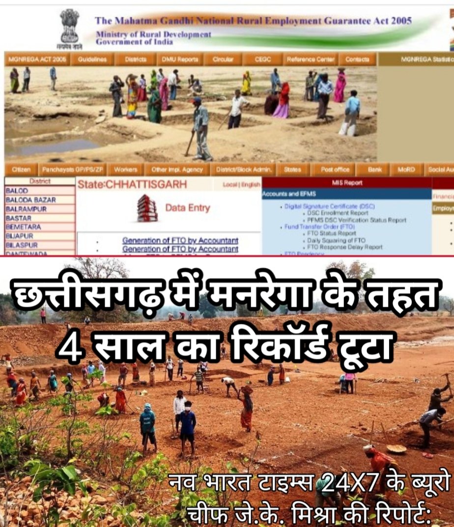 छत्तीसगढ़ में मनरेगा के तहत 4 साल का रिकॉर्ड टूटा नव भारत टाइम्स 24 x 7 के ब्यूरो चीफ जे.के. मिश्रा की रिपोर्ट: छत्तीसगढ़ में