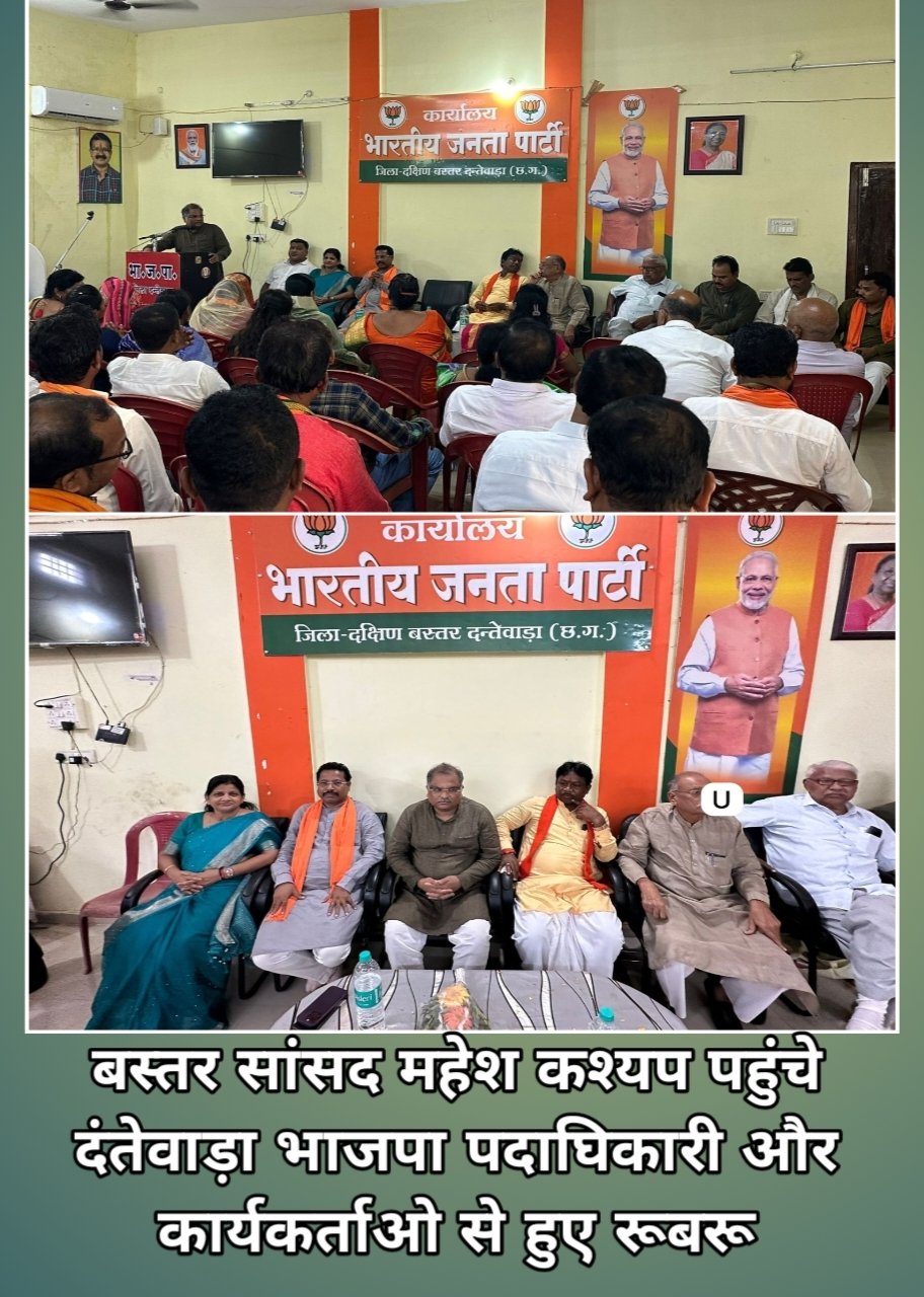 बस्तर सांसद महेश कश्यप पहुंचे दंतेवाड़ा भाजपा पदाघिकारी और कार्यकर्ताओ से हुए रूबरू धर्मपाल मिश्रा नवभारत टाइम्स 24X7.in संभाग ब्यूरो बस्तर दंतेवाड़ा – बस्तर सांसद