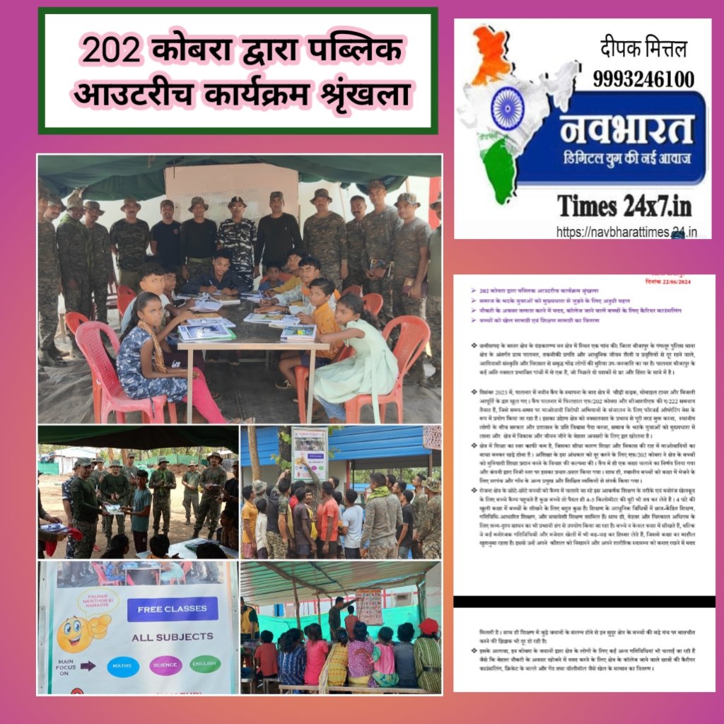 नवभारत टाइम्स जिला बीजापुर ब्यूरो प्रमुख जरखान 6263448923 202 कोबरा द्वारा पब्लिक आउटरीच कार्यक्रम श्रृंखला समाज के भटके