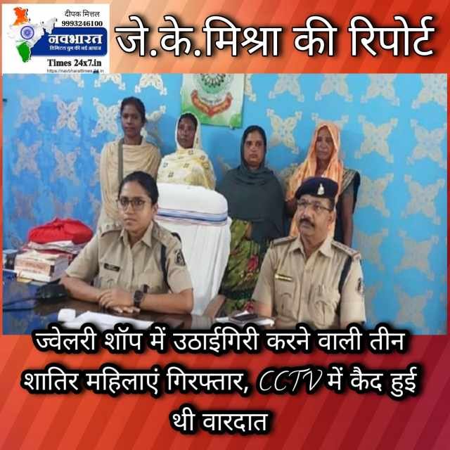नवभारत टाइम्स 24X7.in के ब्यूरो चीफ जे.के. मिश्रा की रिपोर्ट ज्वेलरी शॉप में उठाईगिरी करने वाली तीन शातिर महिलाएं गिरफ्तार, CCTV में कैद हुई थी