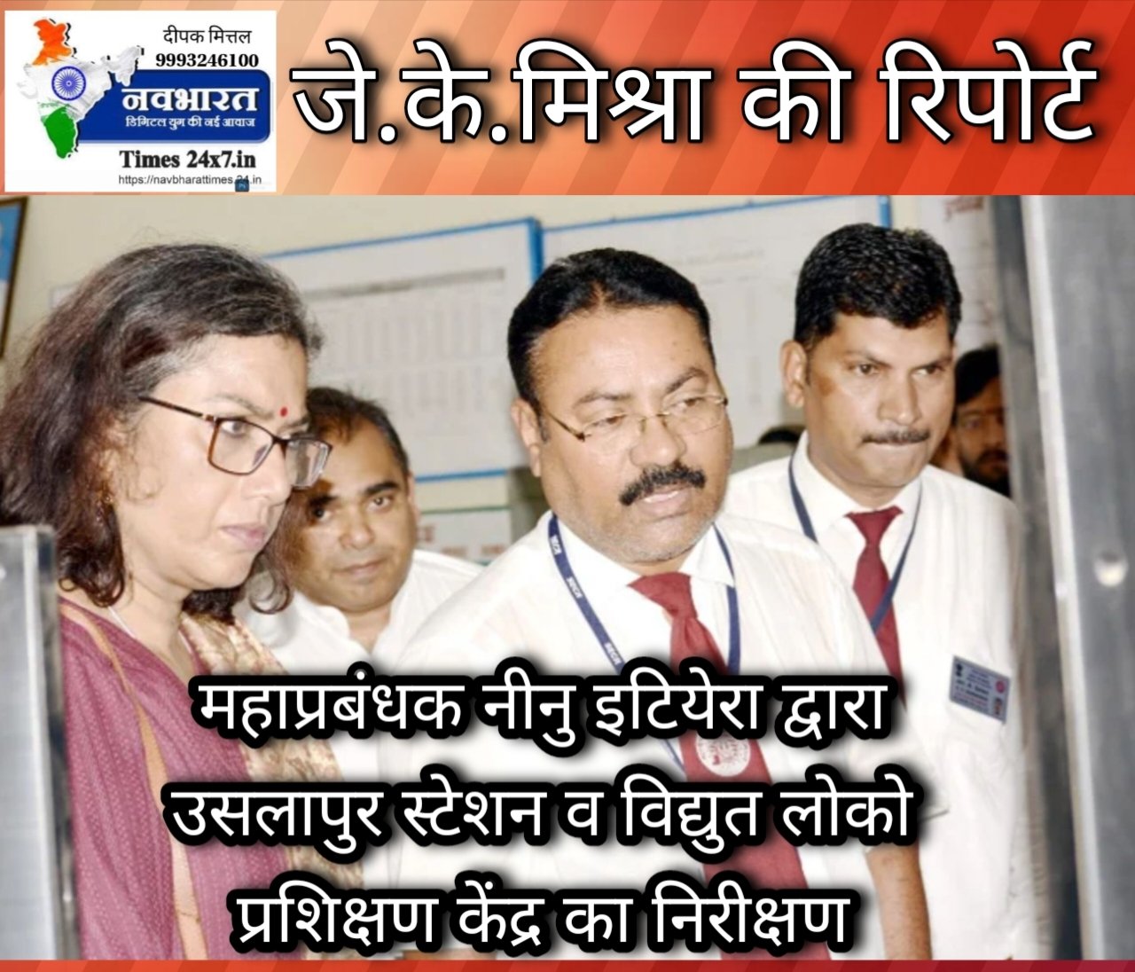 नवभारत टाइम्स 24X7.in के ब्यूरो चीफ जे.के. मिश्रा की रिपोर्ट महाप्रबंधक नीनु इटियेरा द्वारा उसलापुर स्टेशन व विद्युत लोको प्रशिक्षण केंद्र का निरीक्षण बिलासपुर।