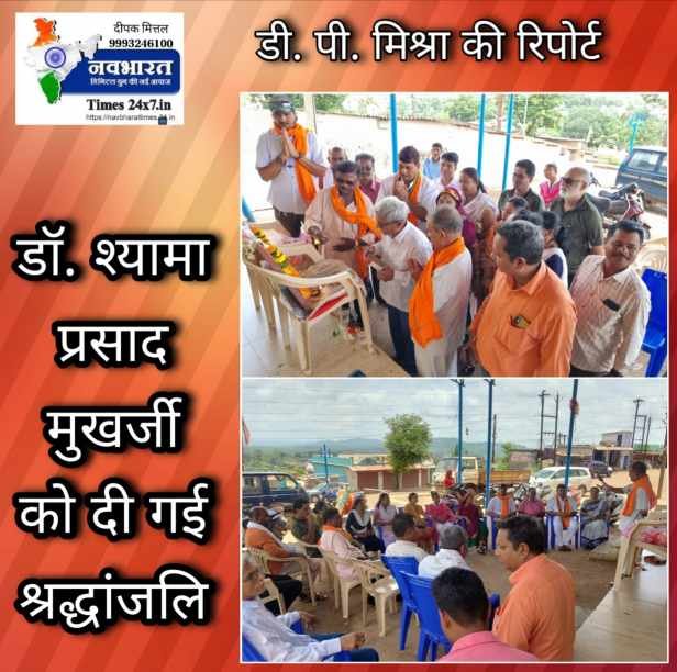 डॉ. श्यामा प्रसाद मुखर्जी को दी गई श्रद्धांजलि डी पी मिश्रा नवभारत टाईम्स 24X7.in ब्यूरो प्रमुख बस्तर संभाग किरंदुल। जनसंघ के संस्थापक पण्डित श्यामा प्रसाद