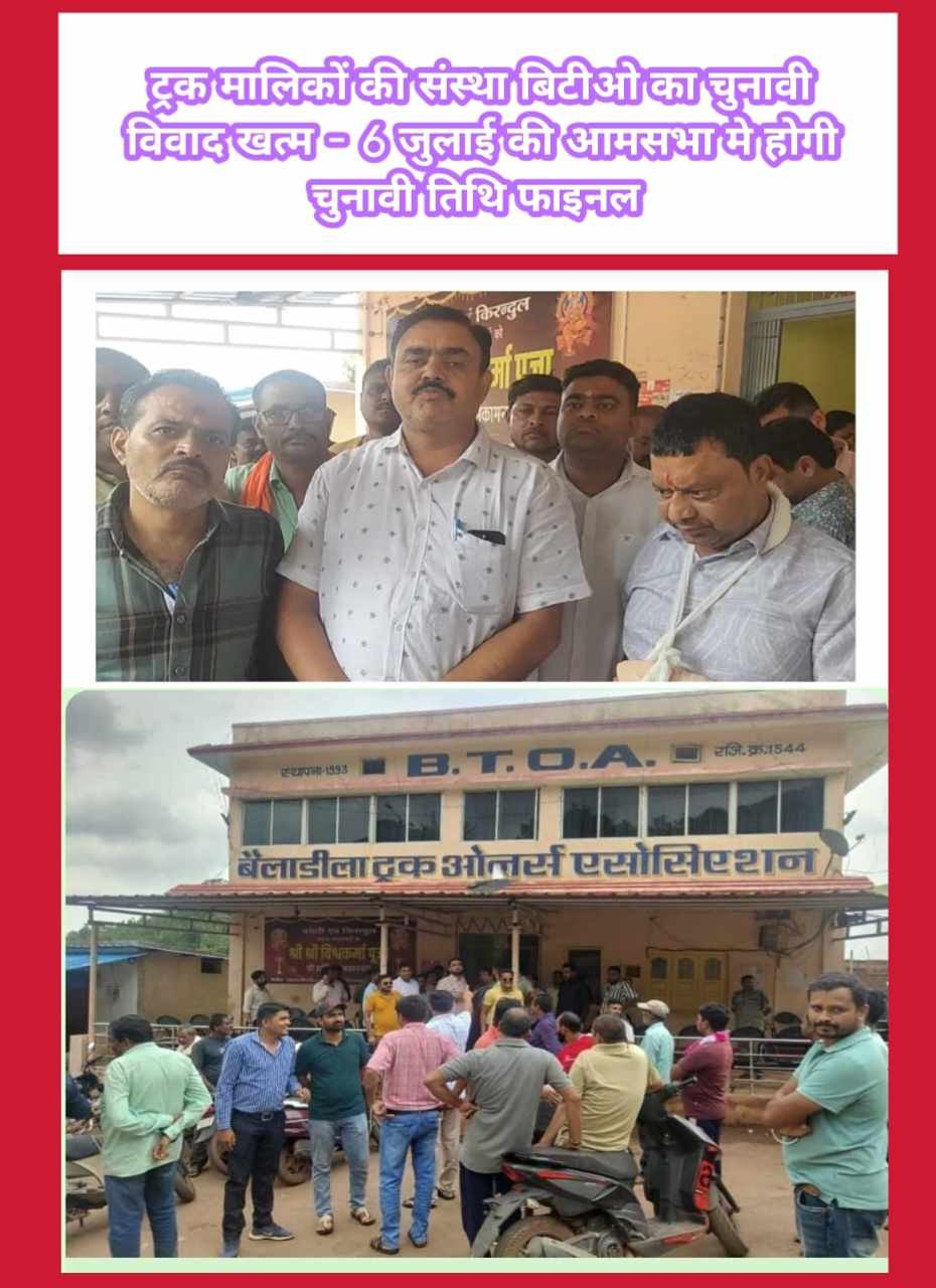 ट्रक मालिकों की संस्था बिटीओ का चुनावी विवाद खत्म – 6 जुलाई की आमसभा मे होगी चुनावी तिथि फाइनल राजेन्द्र सक्सेना जिला प्रमुख दंतेवाड़ा 94255