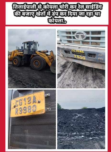 तिलाईपाली से कोयला चोरी कर रेल साईडिंग की बजाए खेतों में डंप कर दिया जा रहा था कोयला.. शैलेश शर्मा 9406308437 नवभारत टाइम्स 24×7.in जिला