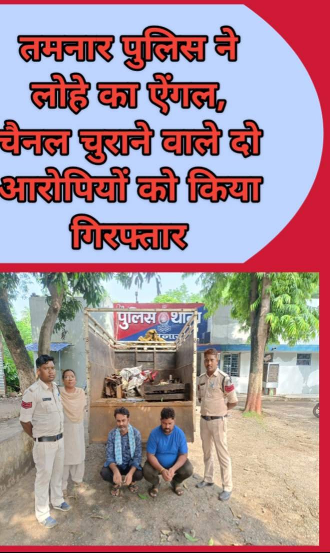 ● *तमनार पुलिस ने लोहे का ऐंगल, चैनल चुराने वाले दो आरोपियों को किया गिरफ्तार*….. शैलेश शर्मा 9406308437नवभारत टाइम्स 24×7.in जिला ब्यूरो रायगढ़ ● *ऐश