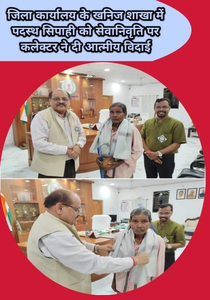 नवभारत टाइम्स जिला बीजापुर ब्यूरो प्रमुख जरखान 6263448923 जिला कार्यालय के खनिज शाखा में पदस्थ सिपाही को सेवानिवृति पर कलेक्टर ने दी