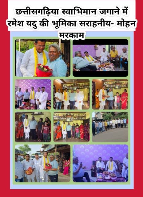छत्तीसगढ़िया स्वाभिमान जगाने में रमेश यदु की भूमिका सराहनीय- मोहन मरकाम स्थानीय विधायक इंद्रसाव सहित मरकाम ने यदु जी से मुलाकात कर जाना हालचाल