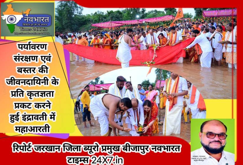 नवभारत टाइम्स जिला बीजापुर ब्यूरो प्रमुख जरखान 6263448923 पर्यावरण संरक्षण एवं बस्तर की जीवनदायिनी के प्रति कृतज्ञता प्रकट करने हुई इंद्रावती में महाआरती*