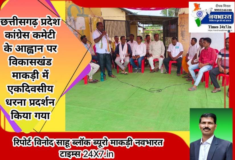 छत्तीसगढ़ प्रदेश कांग्रेस कमेटी के आह्वान पर विकासखंड माकड़ी में एकदिवसीय धरना प्रदर्शन किया गया रिपोर्टर विनोद साहू ब्लॉक प्रमुख माकड़ी नवभारत टाइम्स 24X7.in मोबाइल