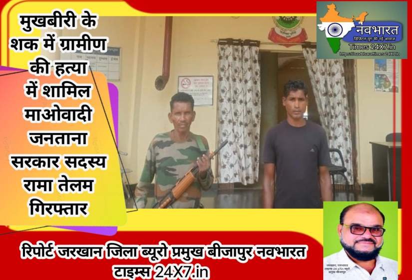 नवभारत टाइम्स जिला बीजापुर ब्यूरो प्रमुख जरखान 6263448923 मुखबीरी के शक में ग्रामीण की हत्या में शामिल माओवादी जनताना सरकार सदस्य रामा तेलम