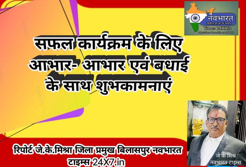 सफल कार्यक्रम के लिए आभार- आभार एवं बधाई के साथ शुभकामनाएं जे के मिश्र जिला ब्यूरो चीफ बिलासपुर *छत्तीसगढ़ प्रदेश तृतीय वर्ग शासकीय कर्मचारी संघ